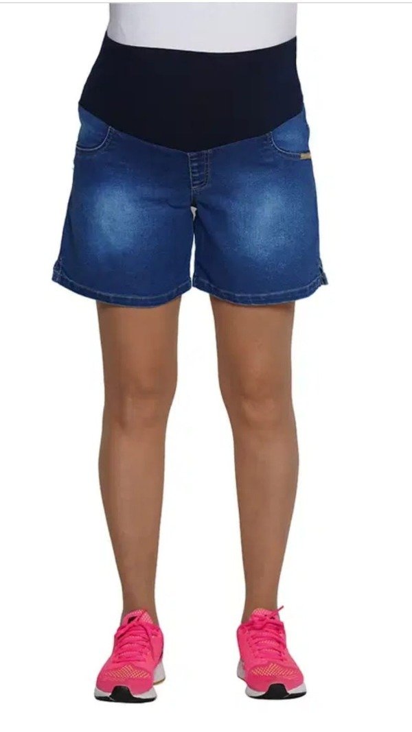 Short de jean con faja maternal elastizada en toda la cintura.