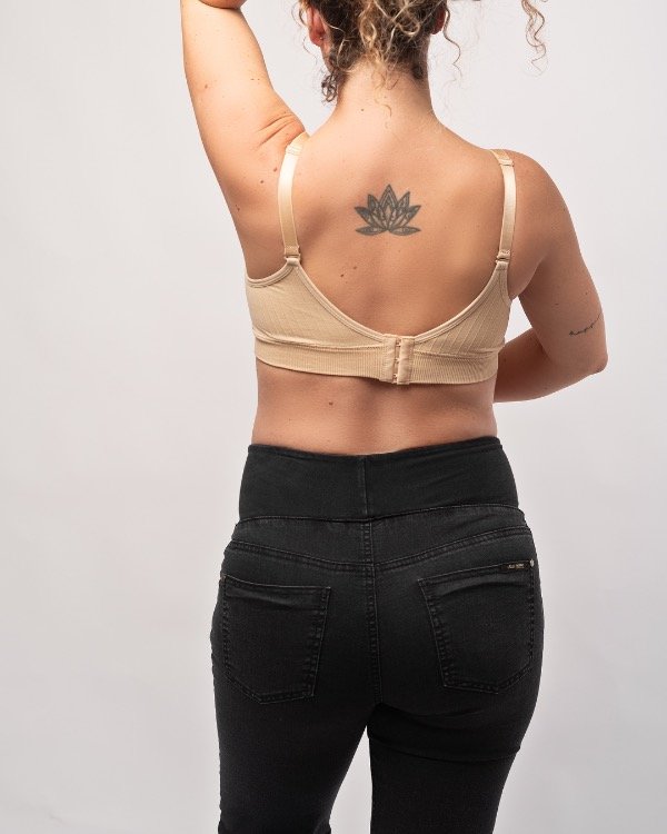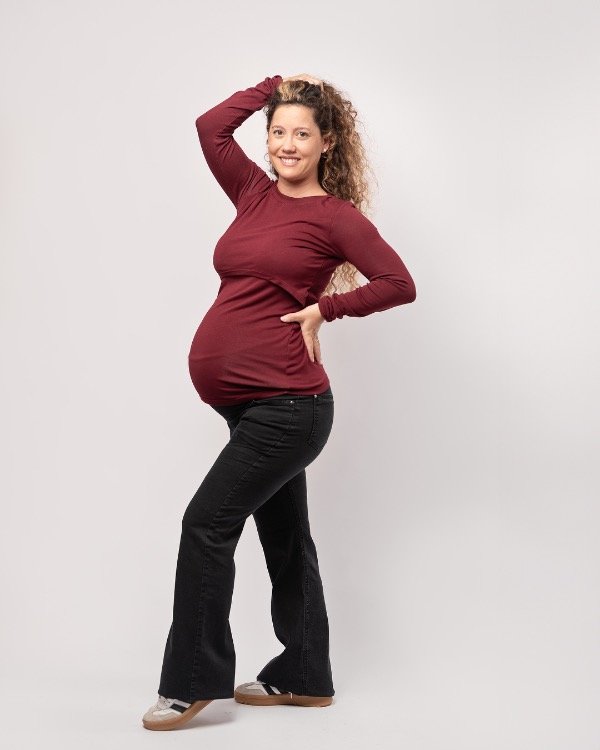 Jean oxford negro gastado, con faja maternal doble tela.
