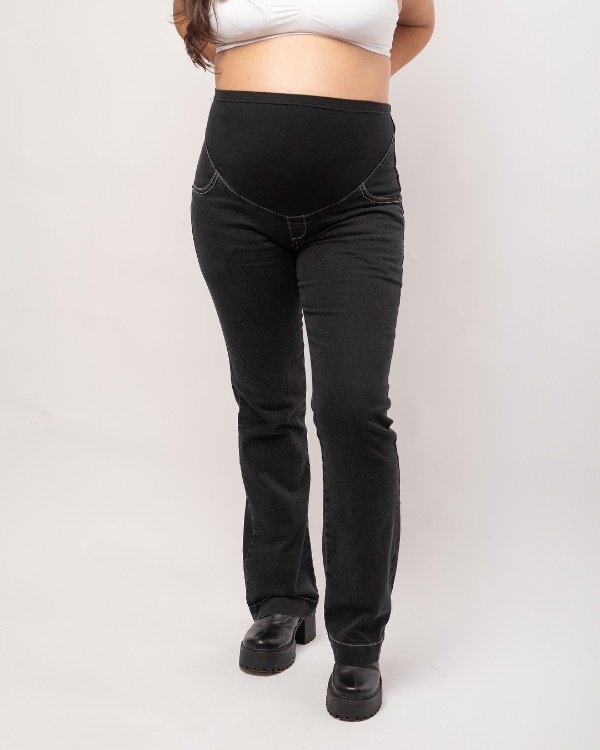 Jean recto tiro alto, botamanga ancha.