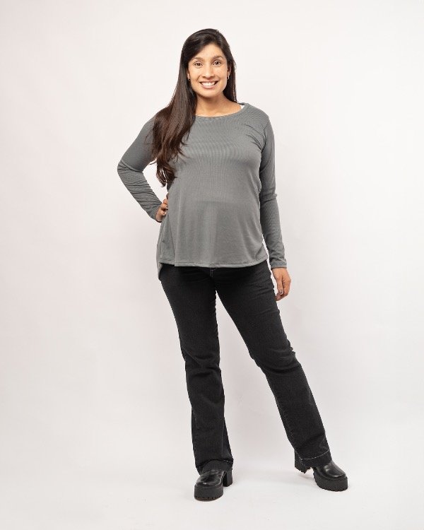 En la parte trasera tiene el tiro de un jean alto regular.
