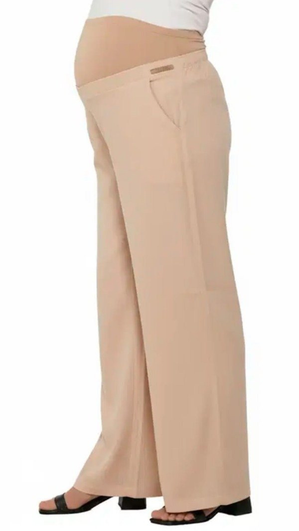Pantalón de lino recto, con faja maternal elastizada.