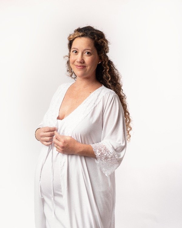 Juego de Camisolín de Algodón con Bata mangas 3/4, con detalles de puntilla.