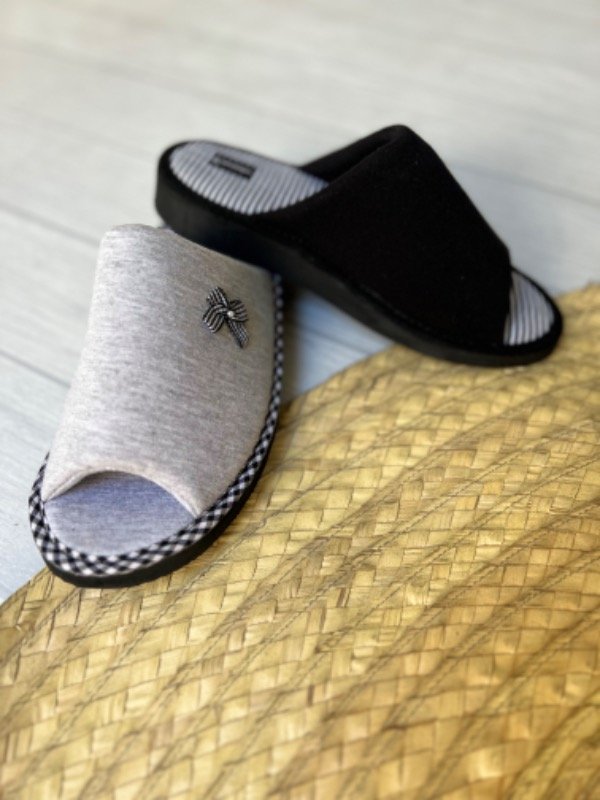 Pantuflas con capellada de algodón, plantilla espumada y suela de goma antideslizante.