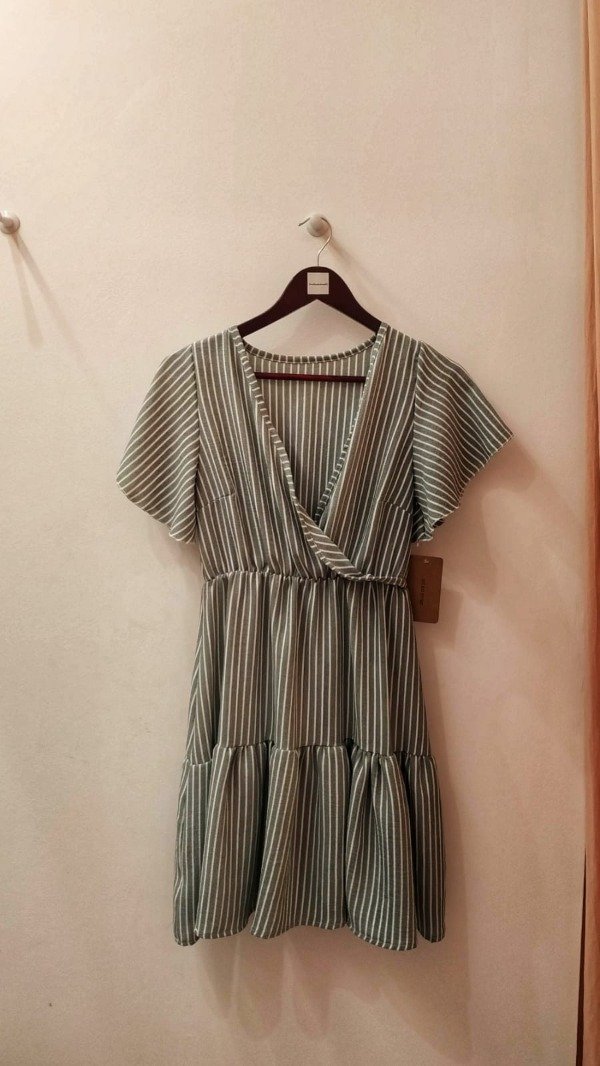 Vestido de cey quebrado (no necesita plancha) corte princesa y escote cruzado, ideal para la etapa de lactancia.